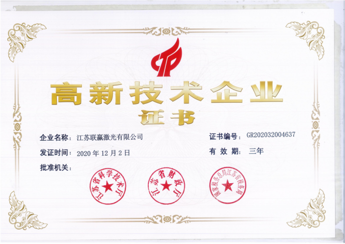阳春三月,乐鱼leyu激光好事连连,这不,刚刚领了两个荣耀的乐鱼leyu激光又迎来了一个重大喜讯,公司全资子公司江苏乐鱼leyu激光有限公司被认定为国家高新技术企业!