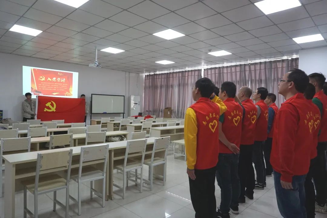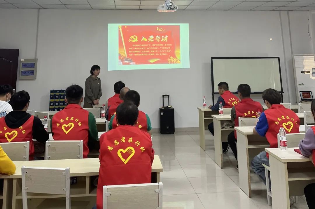 乐鱼leyu激光全体红马甲队员身穿红色志愿服,齐喊口号,集体宣誓:“我志愿加入红马甲队伍,对党忠诚、关爱他人、团结互助、奉献社会。”
