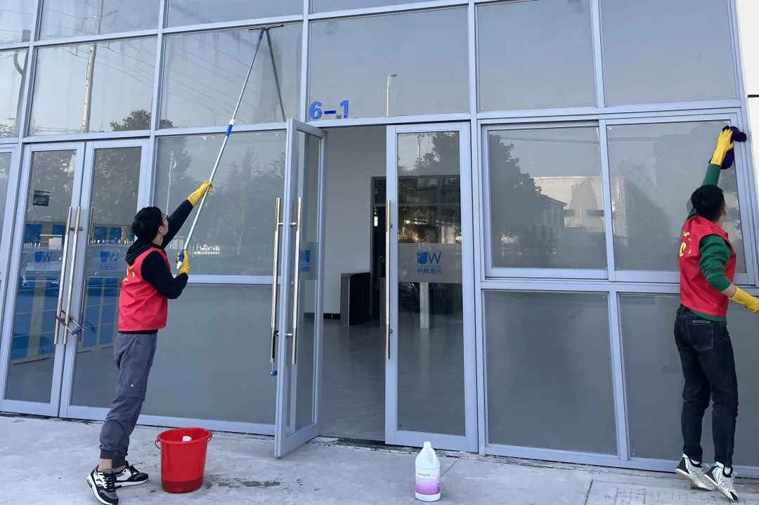 本次志愿活动立足于为员工创造更美好的工作环境,在郭书记的带领下,党员们两两分组,投身园区卫生清洁志愿服务。