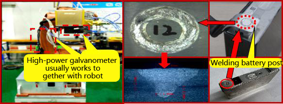 图 10 电池片和接线柱之间的振镜扫描仪焊接