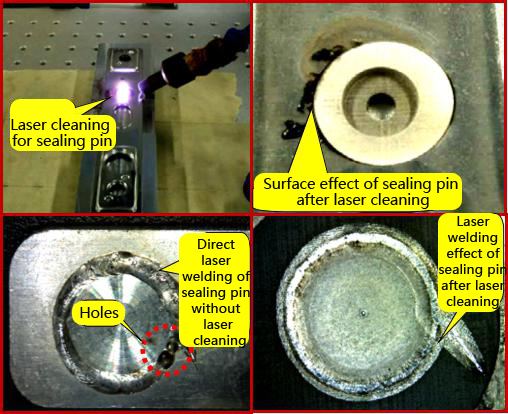 密封销(喷孔盖)有很多种,很像一个直径8mm、厚度0.8的圆形盖帽,可以用脉冲激光焊接。值得注意的是,由于部分盖帽采用冷加工成型,冷加工硬化和残余应力很容易造成焊缝裂纹。所以在焊接前对盖帽进行热处理是很有必要的。方形动力电池的封针通常采用铆接或YAG脉冲激光焊接。使用 300W LP YAG 脉冲激光焊接密封销,生产效率可达 6PPM。直径 8 毫米。为了提高生产率,应该加快焊接速度。所以光纤激光器是实现连续激光焊接的不错选择。然而,由于残留电解液及其结晶容易导致焊接飞溅和小孔,对产品的清洁度要求较高。所以很明显,激光清洗对于这个过程是相当重要的