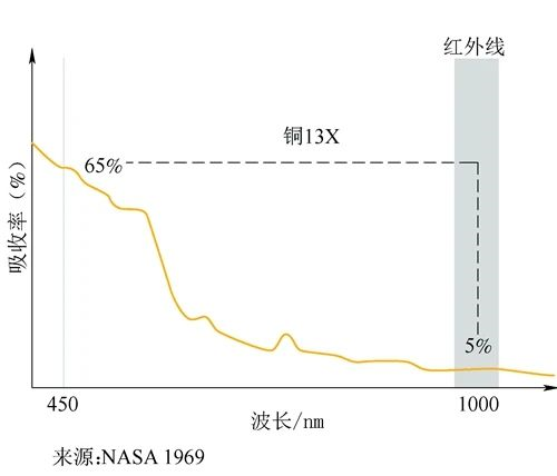 b)铜吸收蓝光与吸收红外线(NIR)的效果对比