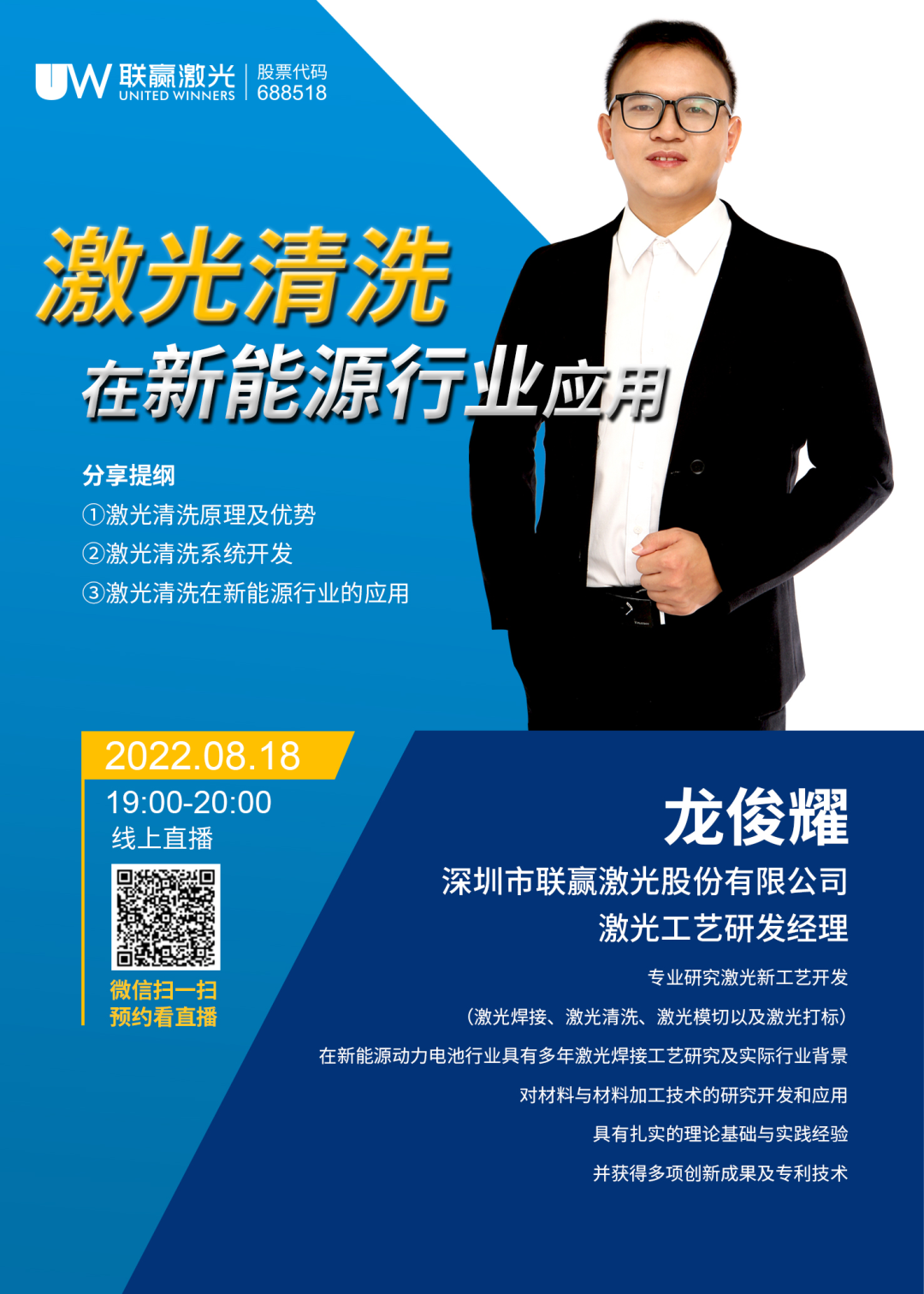 伴随着工业化进程加快和“双碳”目标稳步推进,激光清洗逐步取代传统清洗工艺,并逐渐成为新能源行业不可或缺的装备制造技术。