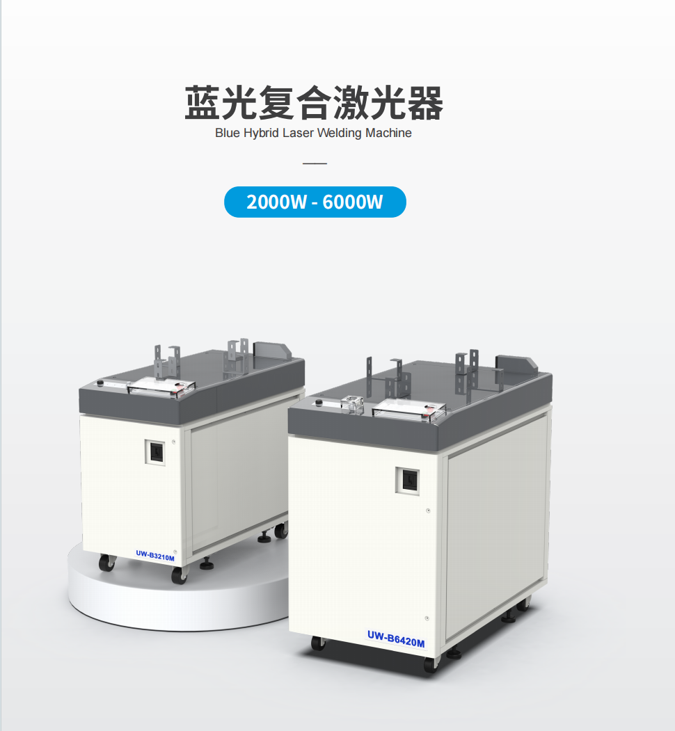 我司自主研发的蓝色复合激光器,是集高功率光纤激光器与高功率蓝光激光器之长的新型复合激光技术。得益于高功率光纤激光器的高功率密度和高反材料在蓝光区域的高吸收特性,蓝色复合激光器在焊接各类铜、金产品的方面极具优势,其优势主要体现在能够有效抑制飞溅和减少气孔产生,特别适合新能源行业的各类铜材的焊接。
