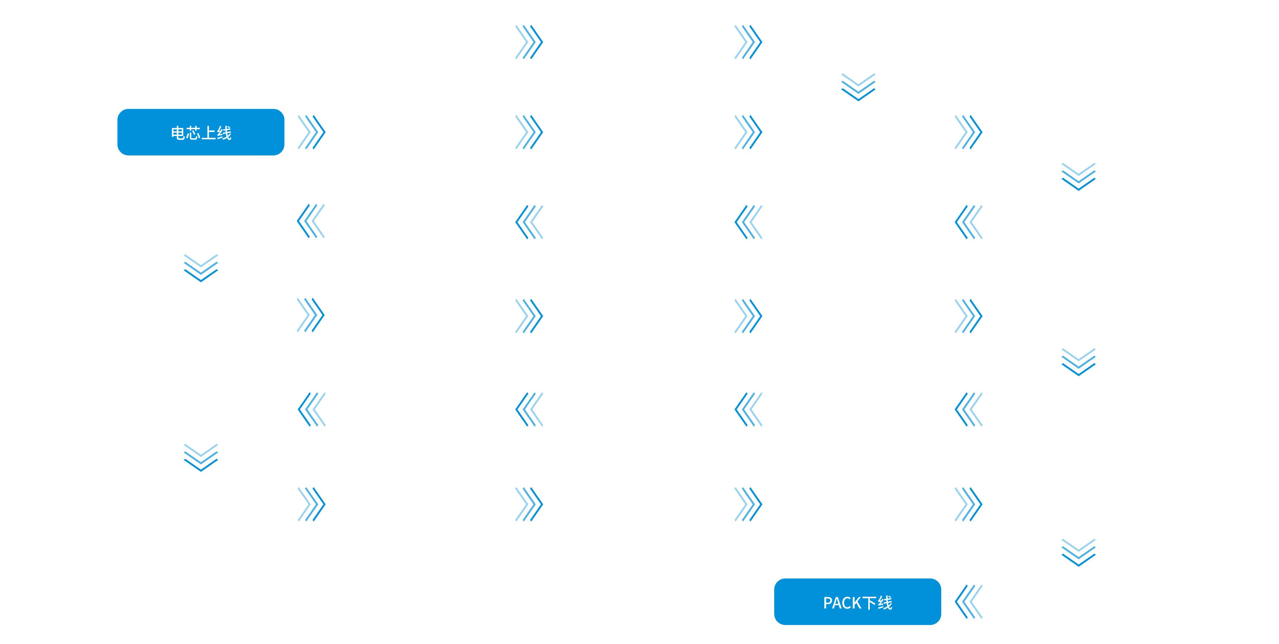整线是一条从电芯到PACK的自动生产整线,主要包含电芯上料、电芯处理、模块组装、模块焊接、模组堆叠、模组测试、PACK组装、PACK测试等工序,整线效率24PPM。